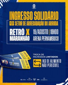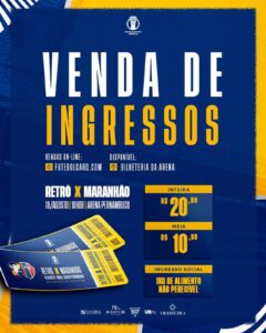 O Retrô iniciou a venda de ingressos para a partida contra o Maranhão em jogo de volta das oitavas de final da Série D. As equipes entram em campo no próximo sábado (19), às 18h na Arena de Pernambuco. No jogo de ida, empate sem gols no estádio Castelão em São Luís.